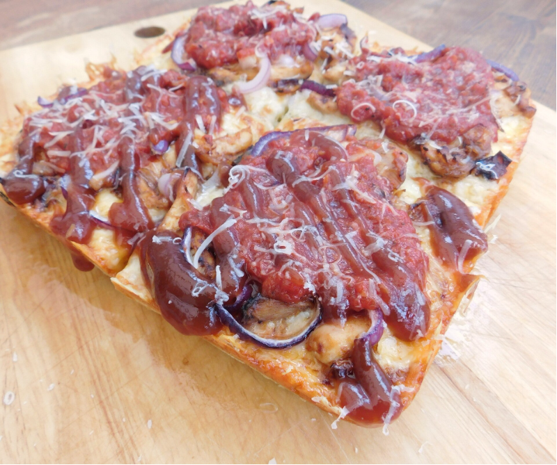 The Pitstop - A BBQ inspired pizza loaded with cheddar cheese, tender shredded chicken coated in smoky BBQ sauce, layered with our homemade rich tomato sauce, and finished with a final drizzle of BBQ for extra depth and flavour.